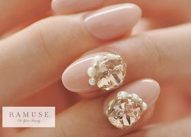 스톤이 굴러다녀도, 뽀얀 분위기♡ 누디×비즈의 【한국 네일 아트】가 멋스러워.