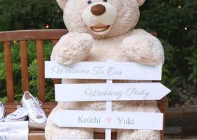 웨딩 사이니지를 코스트코 곰에게 들려주기 위한 귀여운 장식 방법 ♡ 웰컴 스페이스의 수호자처럼