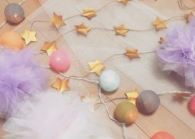 【100엔 DIY】리본, 별, 폼폼으로 만드는 포토 부스 배경이 너무 귀여워*